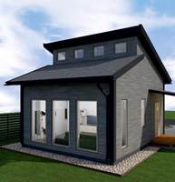 Tässäkin mallissa olohuoneessa on avaruuden tuntua korkean tilan ansiosta. Nukkumaparvella on poikkeuksellista ilmavuutta, koska seinien sijaan kaikilla neljällä reunalla voidaan käyttää pelkkää kaidetta.